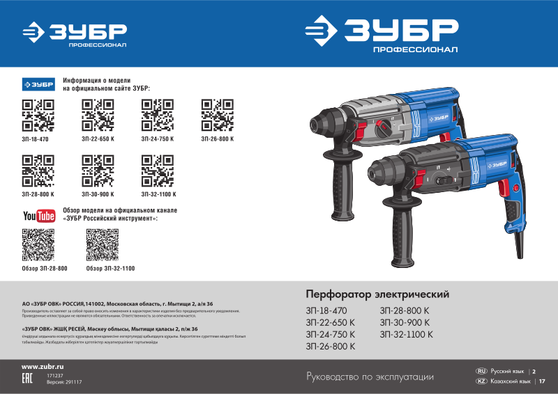 вне авторизованных сервисных центров. Полный актуальный список авторизованных сервисных центров смотрите на сайте zubr.ru.