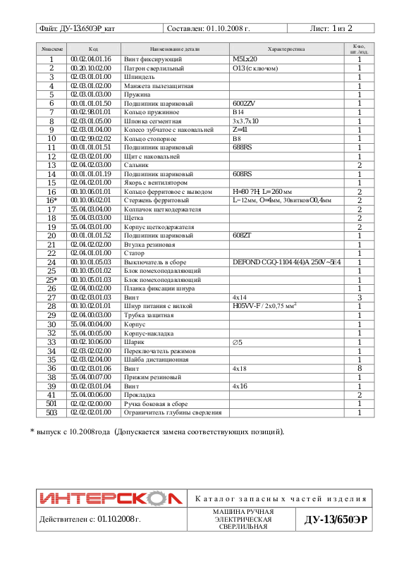 Файл: ДУ-13.650ЭР_кат Составлен: 01.10.2008 г. Лист: 2 из 2