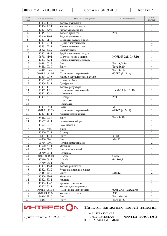 Файл: ФМШ-100.710Э_кат Составлен: 30.09.2010г. Лист 1 из 2