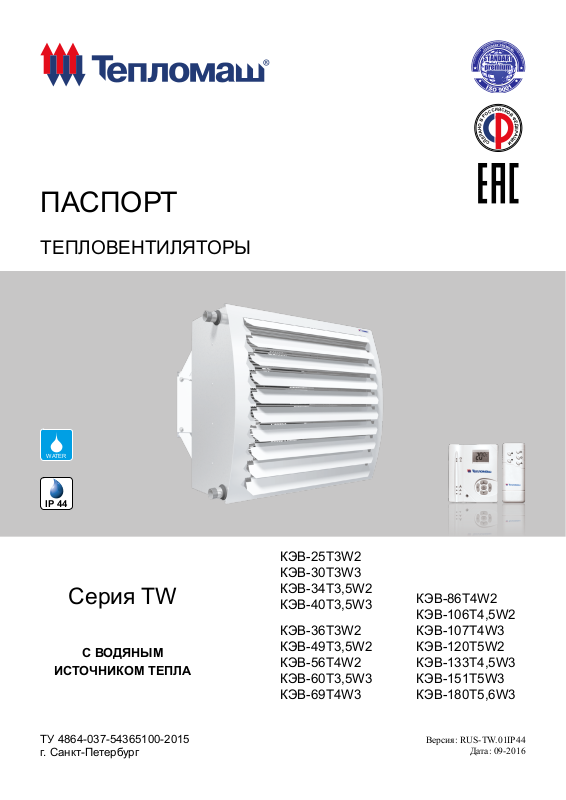 Тепломаш КЭВ-36T3W2, КЭВ-49Т3.5W2 User manual