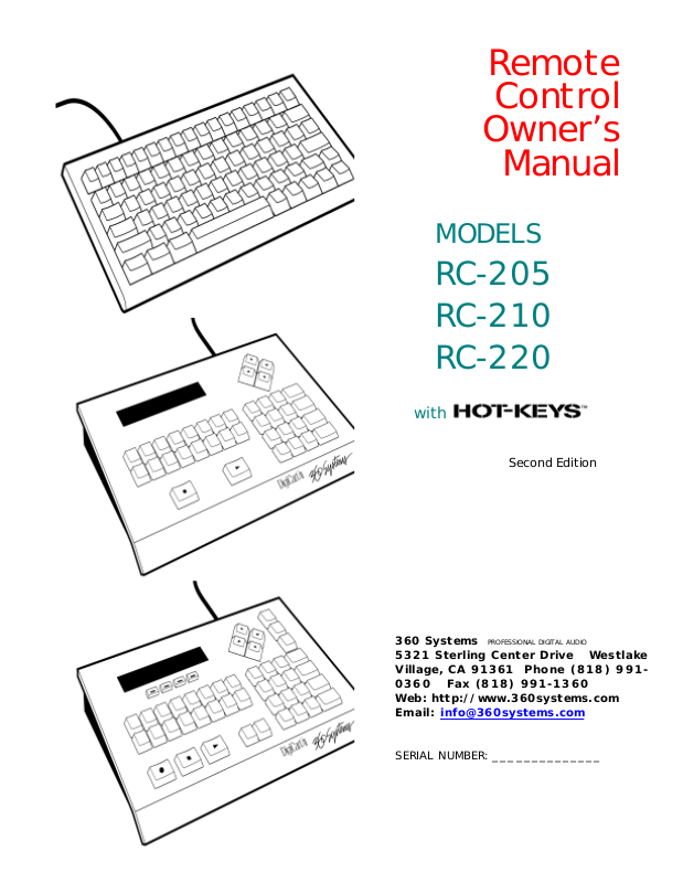 RC-205/210/220 Remote Control Owner's Manual Second Edition March 1997 Page 1