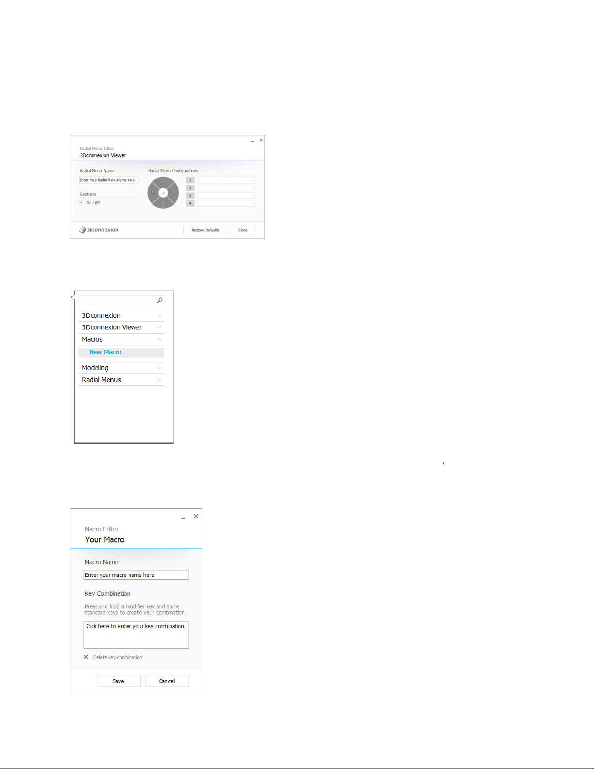 To edit or delete a user defined Macro or Radial Menu, Click on the corresponding pencil (edit) or cross