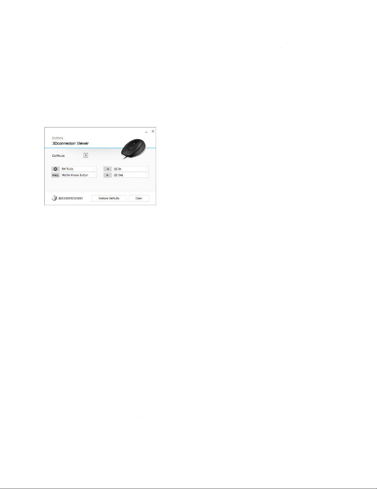 The Buttons panel within 3Dconnexion Properties allows you to assign commands, Macros or Radial
