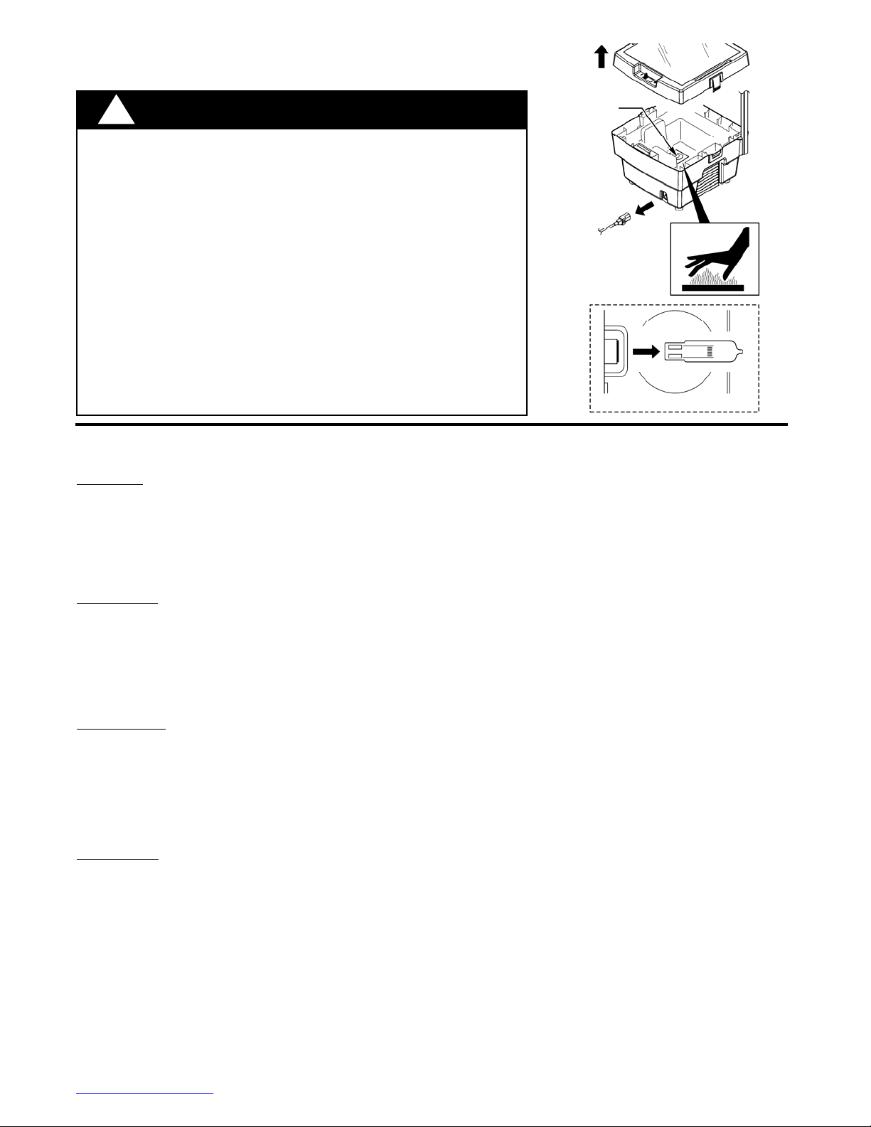 - Disconnect this projector from its source of supply before replacing the projection lamp or performing any other service.