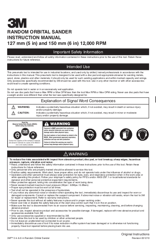 3M™ 5 in & 6 in Random Orbital Sander 1 Revision 051210