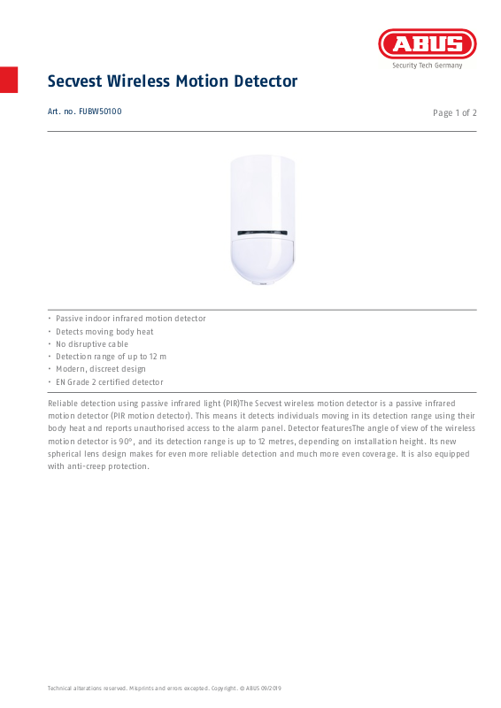 Technical alterations reserved. Misprints and errors excepted. Copyright. © ABUS 09/2019