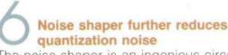 The noise shaper is an ingenious circuit which uses feedback of tolerance errors in the digita filter to decrease noise in the audible range Together with the 20-bit conversion principle this results in utter freedom from noise. Music reproduction becomes almost uncannily real, as even the most delicate musical nuances are faithfully preserved.