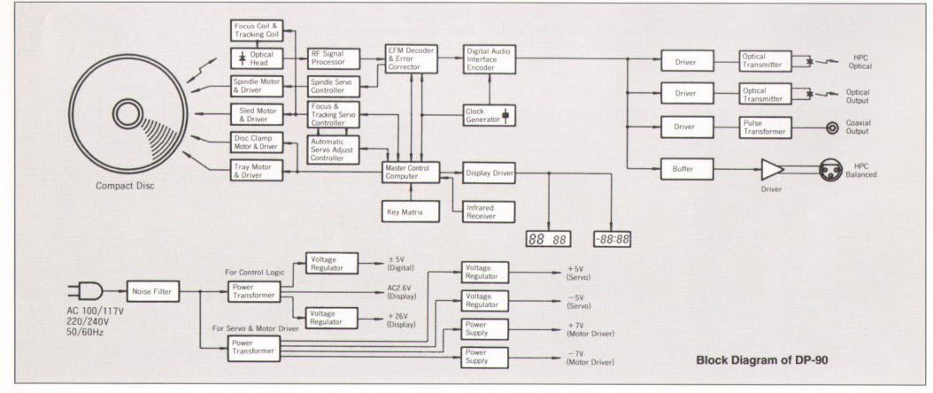 receive the high-quality digital signals from the CD Transport DP-90, the DC-91 has dedicated HPC optical and balanced inputs. The optical input uses the same ultra-fast Hewlett-Packard link with a data transfer rate of 150 MBPS. The total absence of pulse distortion and jitter ensures absolutely pure digital signal transmission.