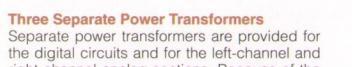 All digital inputs are designed internally to handle 24-bit audio data, to allow for future expansion. Two 24-bit digital outputs are also provided, making the unit ready for the next generation of digital audio components.