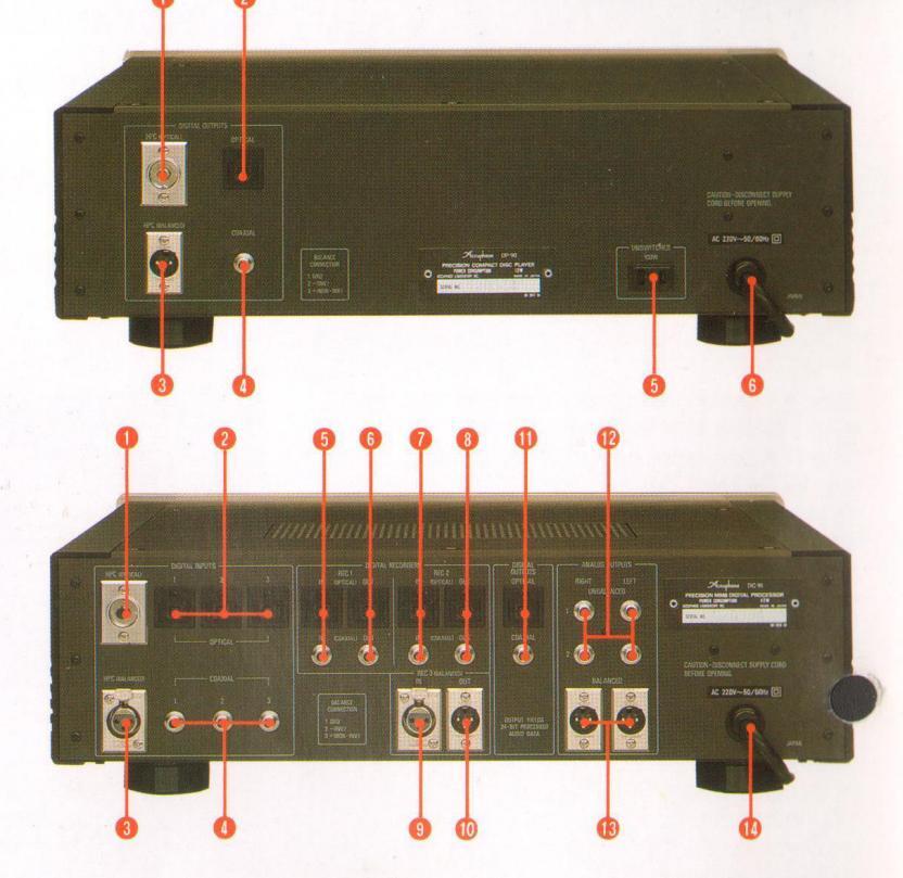 Besides the HPC optical and balanced inputs, he DC-91 provides three optical and three poaxial inputs conforming to the EIAJ Digital Audio Interface standard. In addition, three sets of terminals for digital recording devices such as DAT, DCC, or MD devices are also prorided. One of these is a balanced connection, which conforms to the AES/EBU professional ormat.