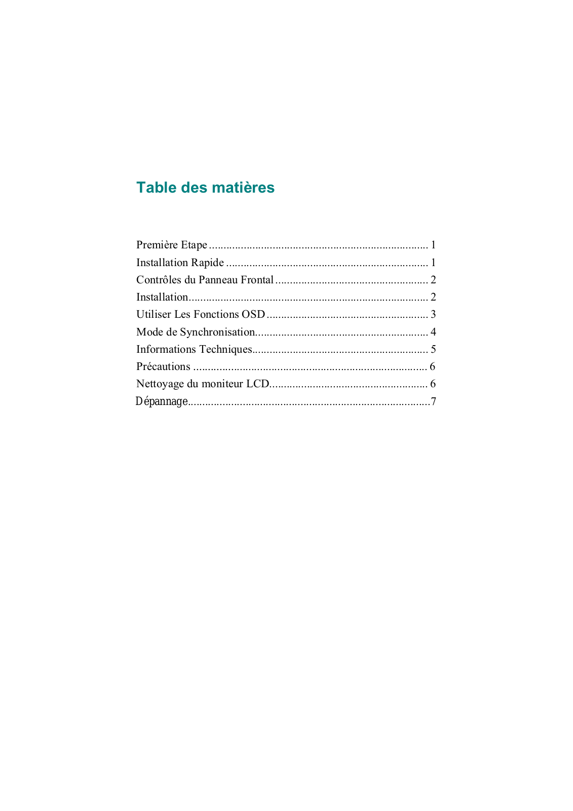 Table of contents