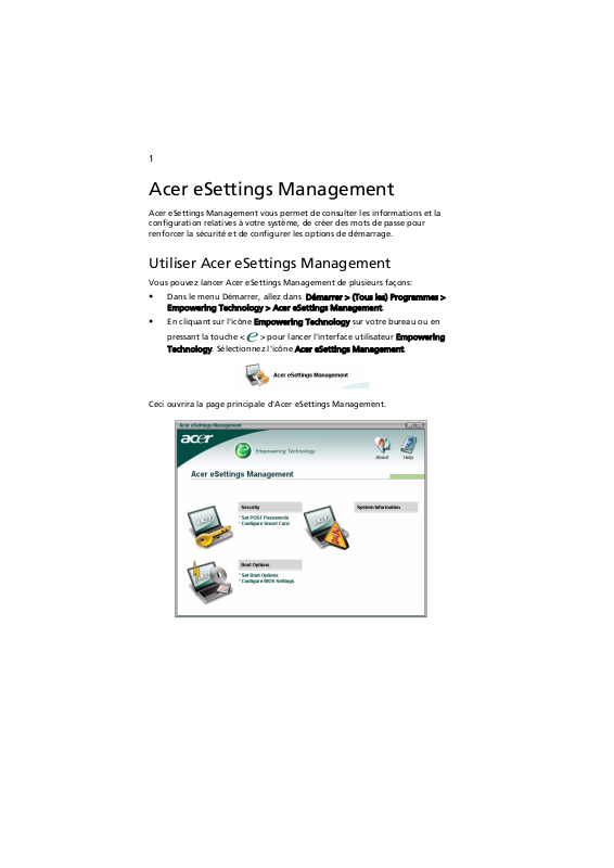 Vous pouvez lancer Acer eSettings Management de plusieurs façons: