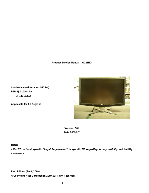 This manual contains information about maintenance and service of acer products. Use this manual to