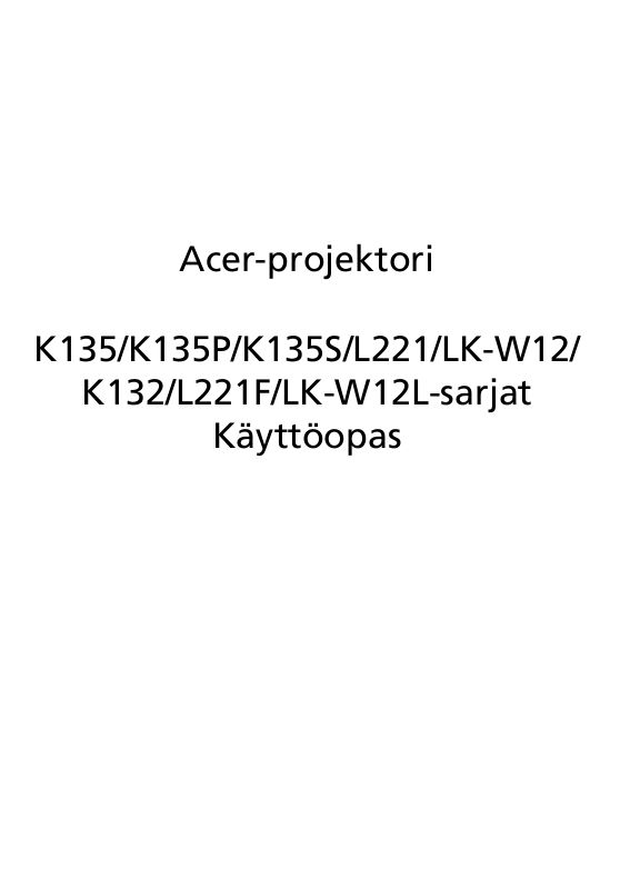 Acer-projektori K135/K135P/K135S/L221/LK-W12/K132/L221F/LK-W12L -sarjojen käyttöopas