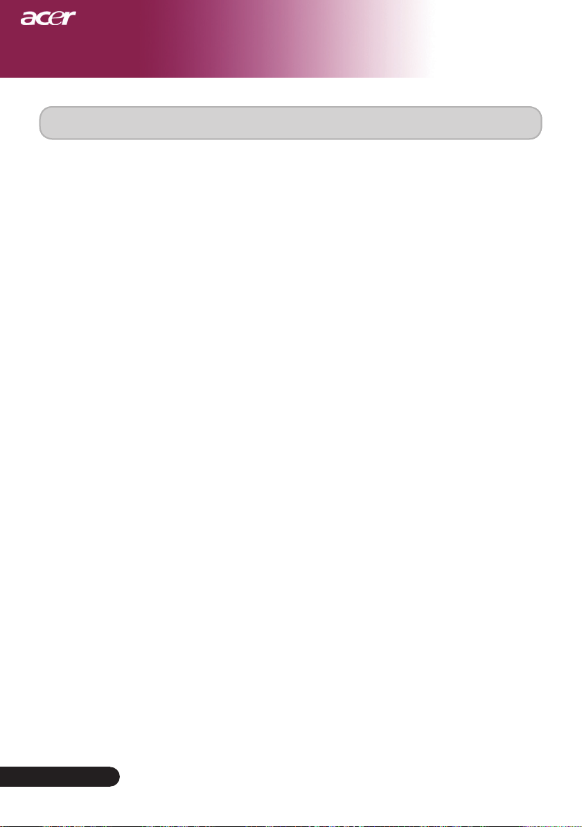 Denna bilaga listar allmänna meddelanden för din Acer-projektor.