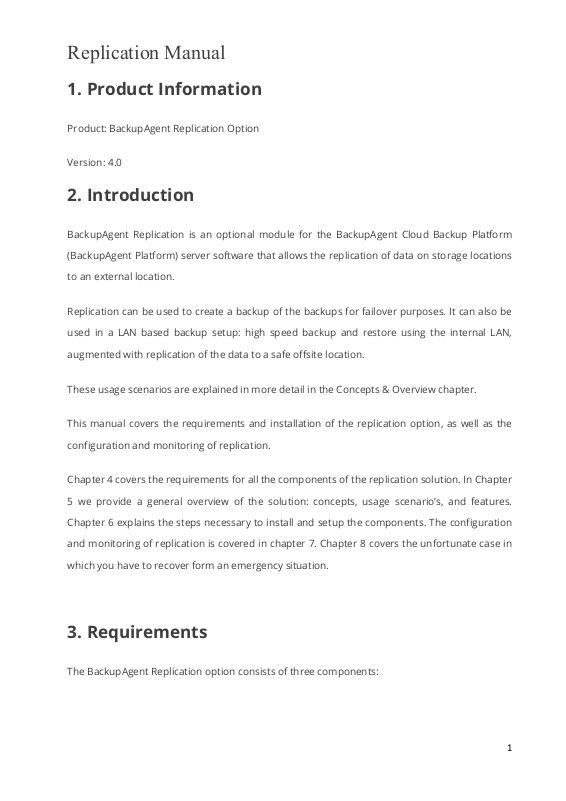 Replication is introduced as an optional module for the BackupAgent Platform server as of