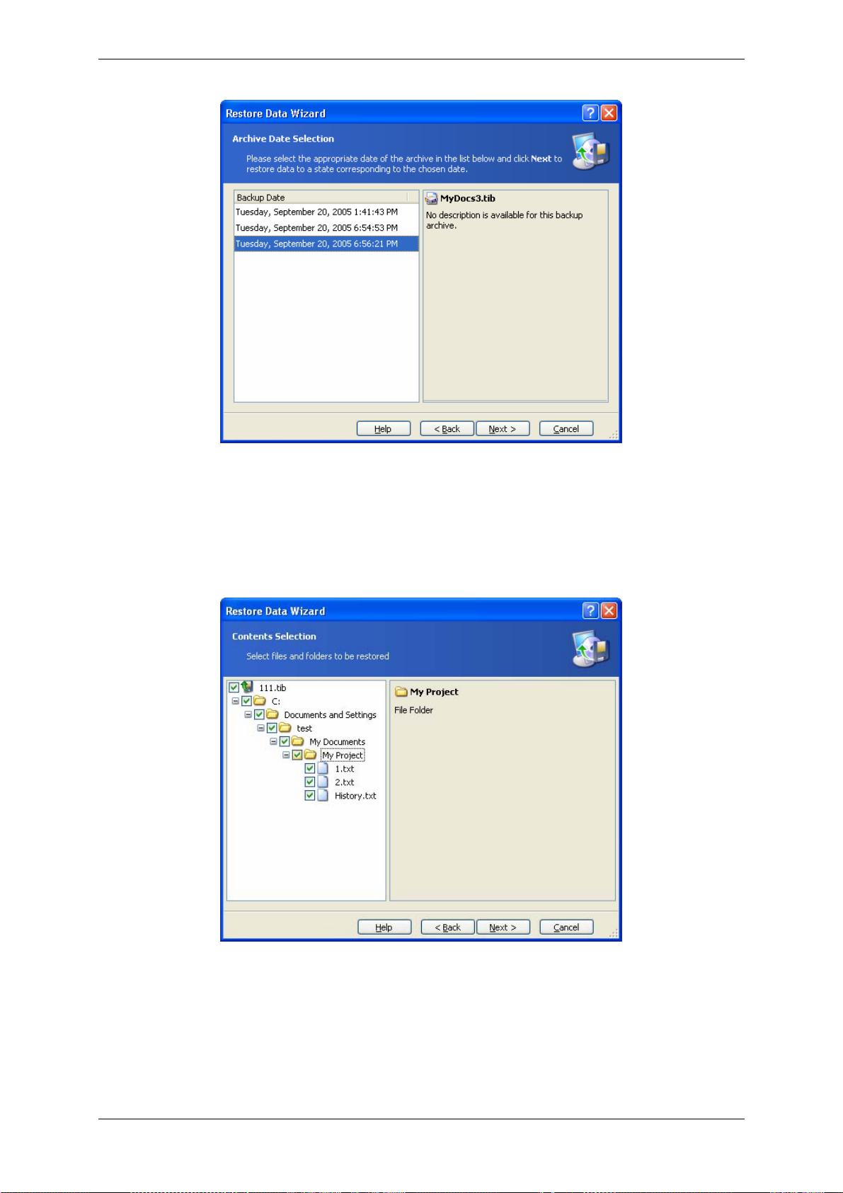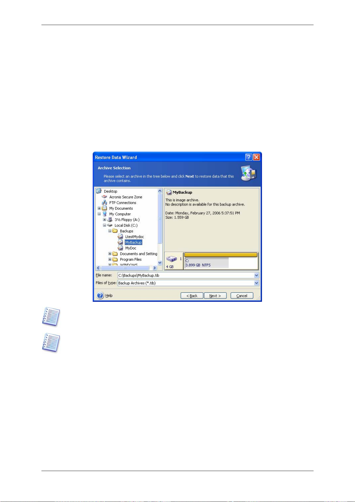 • This will restore all fil es from E:\Backups\Myproject.tib to the original folder and assign