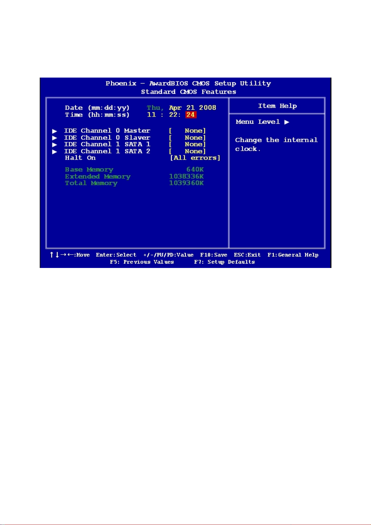 The Standard CMOS Features screen gives you an overview of the basic system.