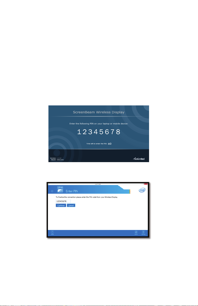box on the screen of the WiDi device. Enter the PIN in the PIN entry