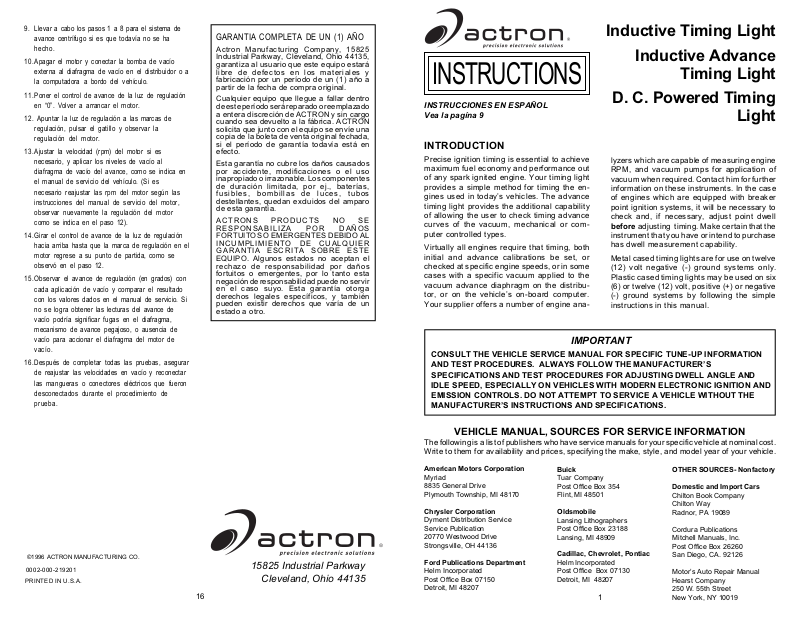 provides a simple method for timing the engines used in today’s vehicles. The advance