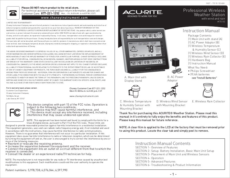Thank You for purchasing this ACURITE® Weather Station. Please read this