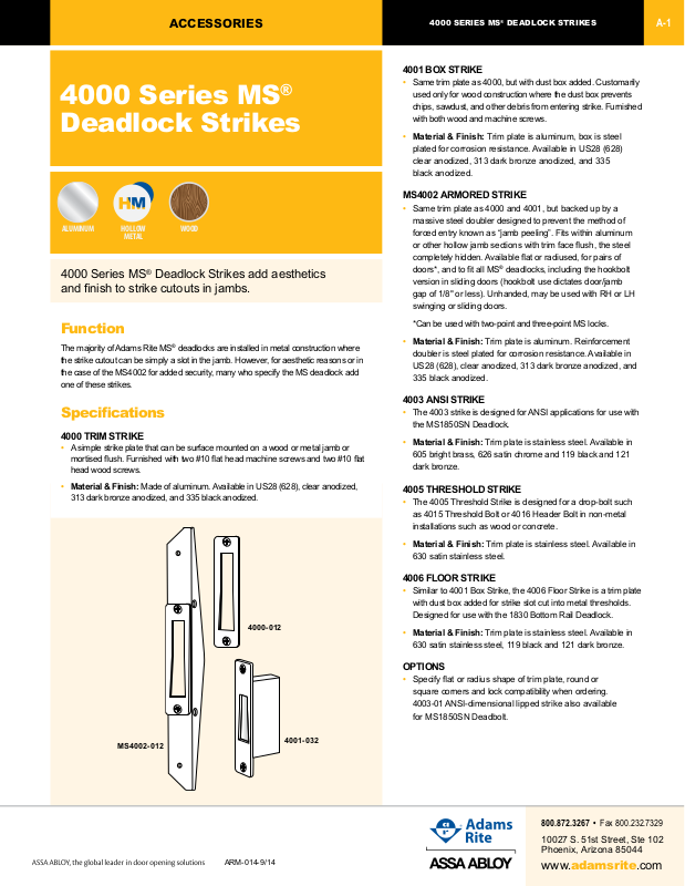 4000 SERIES MS® DEADLOCK STRIKES