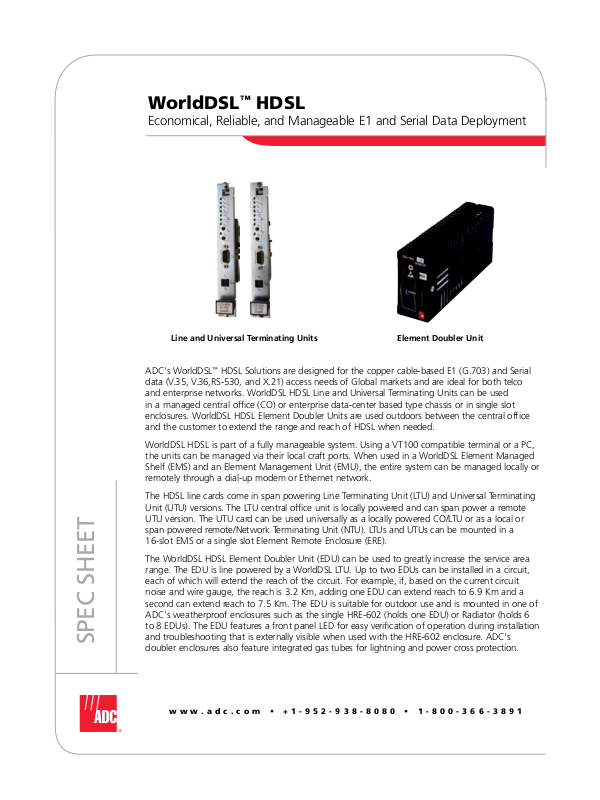 and enterprise networks. WorldDSL HDSL Line and Universal Terminating Units can be used