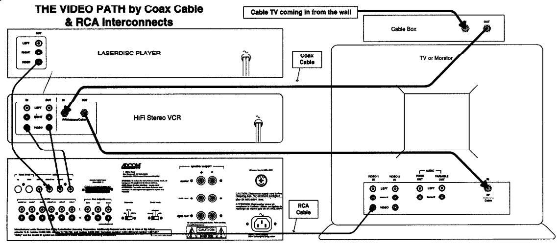 NOTES: Video1 should be a non-recording-type video source such as a Laserdisc or Satellite dish. Video2 should be a recording-type video source such as a VCR or Camcorder. Audio1 should be a non-recording-type audio source such as a CD player or Tape Deck. Audio2 should be a recording-type audio source such as a Cassette Deck or DAT machine. (If need be, you can plug an "audio source" into a "video" input such as a CD player into Video1.)