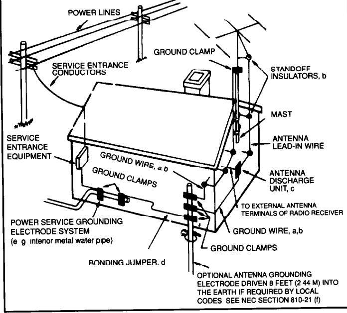 EXAMPLE OF ANTENNA GROUNDING AS PER NATIONAL ELECTRICAL CODE INSTRUCTIONS CONTAINED IN ARTICLE 810 - RADIO AND TELEVISION EQUIPMENT
