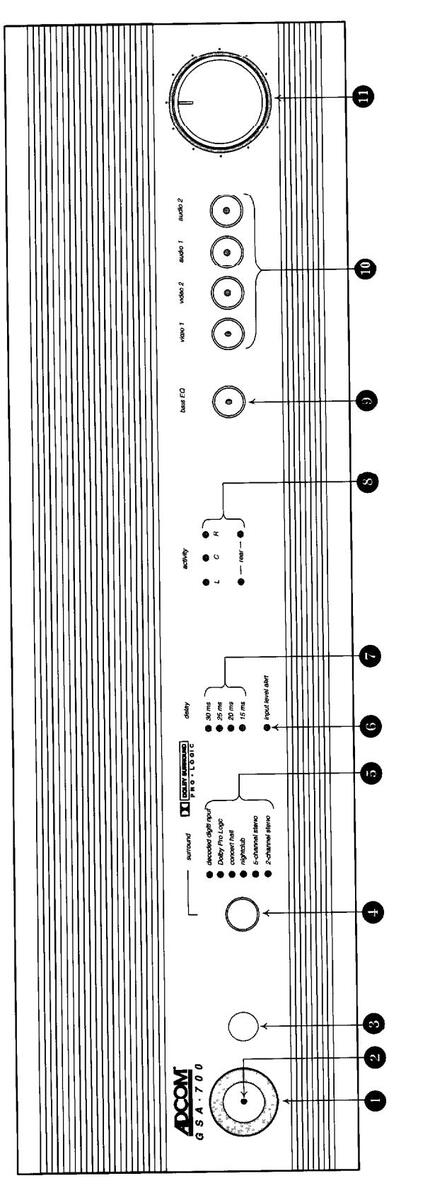 The GSA-700 is a unique addition to the Home Theater industry, being a 3-channel, high-current, quality amplifier system combined with a Dolby Pro Logic Processor and including a port to incorporate an Adcom Dolby Digital® Surround Processor (the GDD-1). The GSA-700 is designed to be added to an existing 2-channel audio system to convert it into a 5-channel Audio/Video Home Theater Surround System with the convenience of On Screen display and full-function remote control.