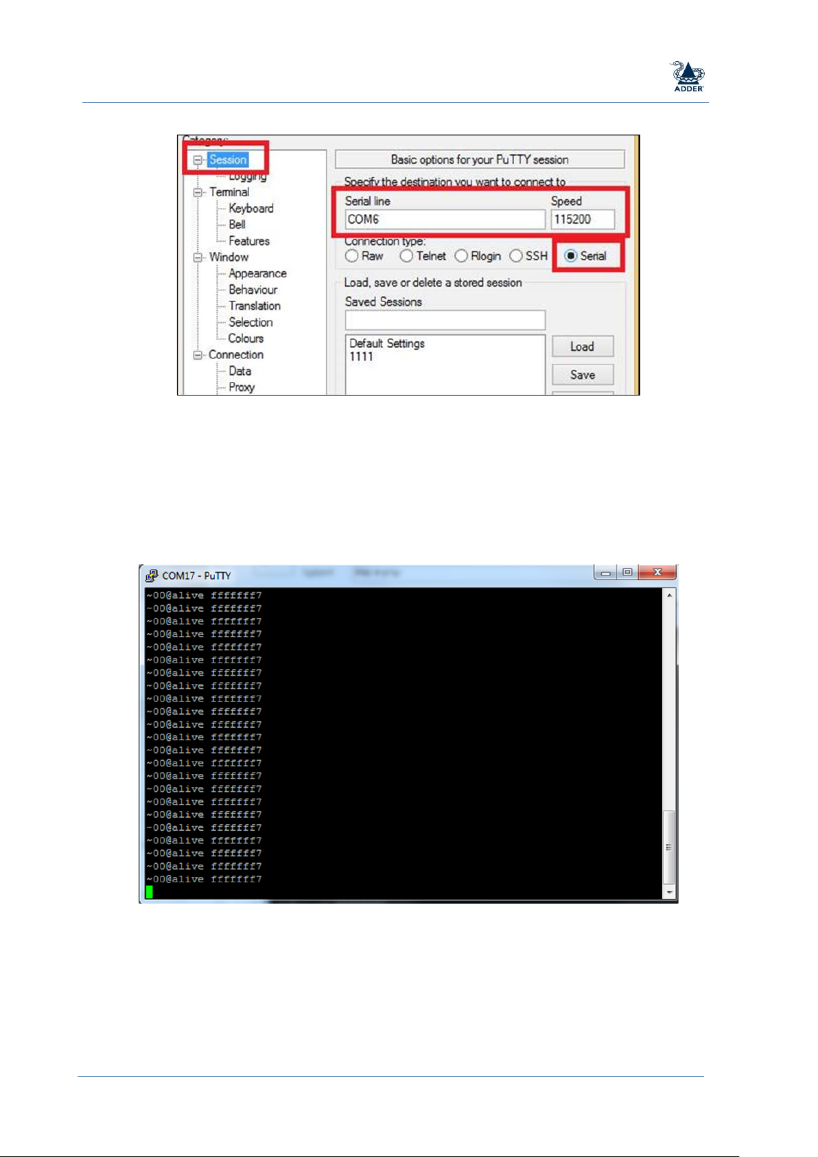 Configuring Example Using the PuTTY open-source serial console utility. This procedure demonstrates