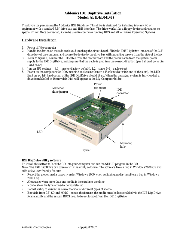 Addonics IDE DigiDrive Installation