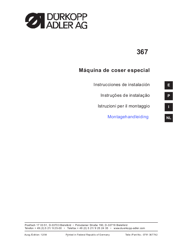 DA-10 is te bestellen bij uw DÜRKOPP ADLER AG dealer onder