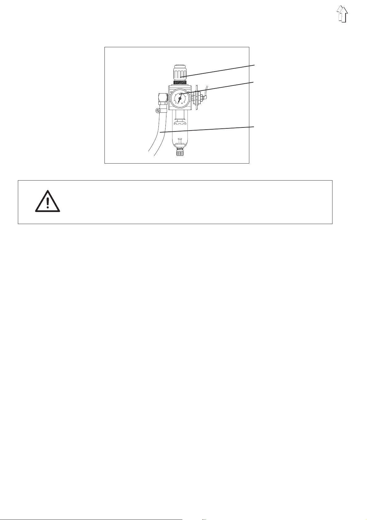 Para regular la presión de trabajo subir la manecilla giratoria 1 y