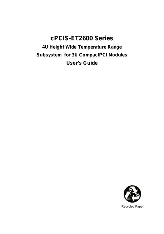 information for the cPCIS-ET2600 3U CompactPCI subsystem. The cPCISET2600 subsystem is assembled using the following components: