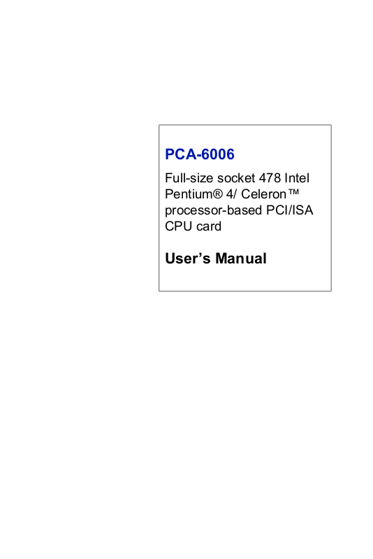 • PCA-6006 Pentium ® 4/Celeron™ processor-based single board com-