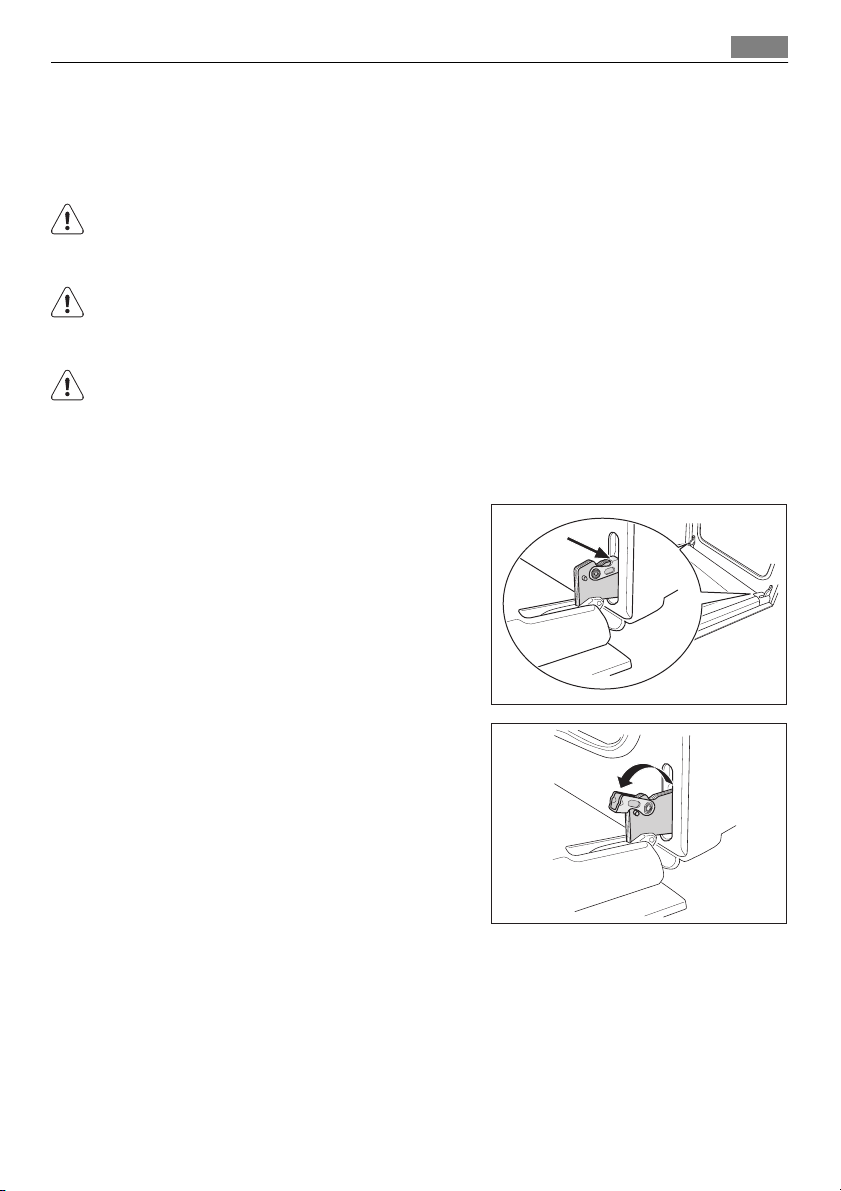 • Gehen Sie beim Aushängen der Tür vorsichtig vor. Die Tür ist schwer!