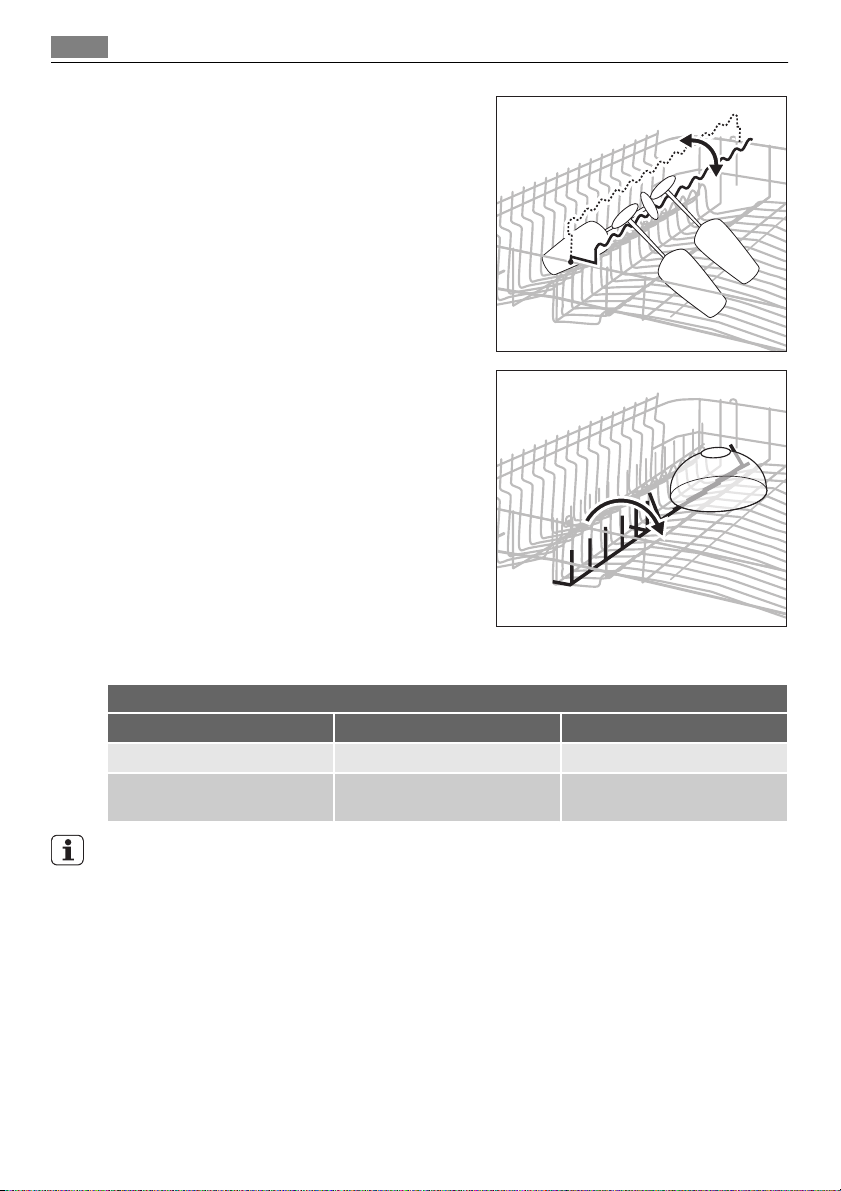 • Laita veitset ja muut teräväkärkiset esineet ruokailuvälinekoriin kärki alaspäin tai yläkoriin vaakasuoraan asentoon.