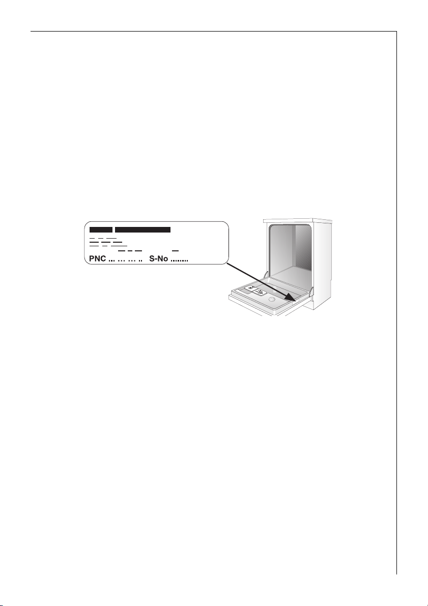 Geben Sie dem Kundendienst die PNC-Nummer und die S-No (Seriennummer) an, die Sie auf dem Typschild finden. Es befindet sich am