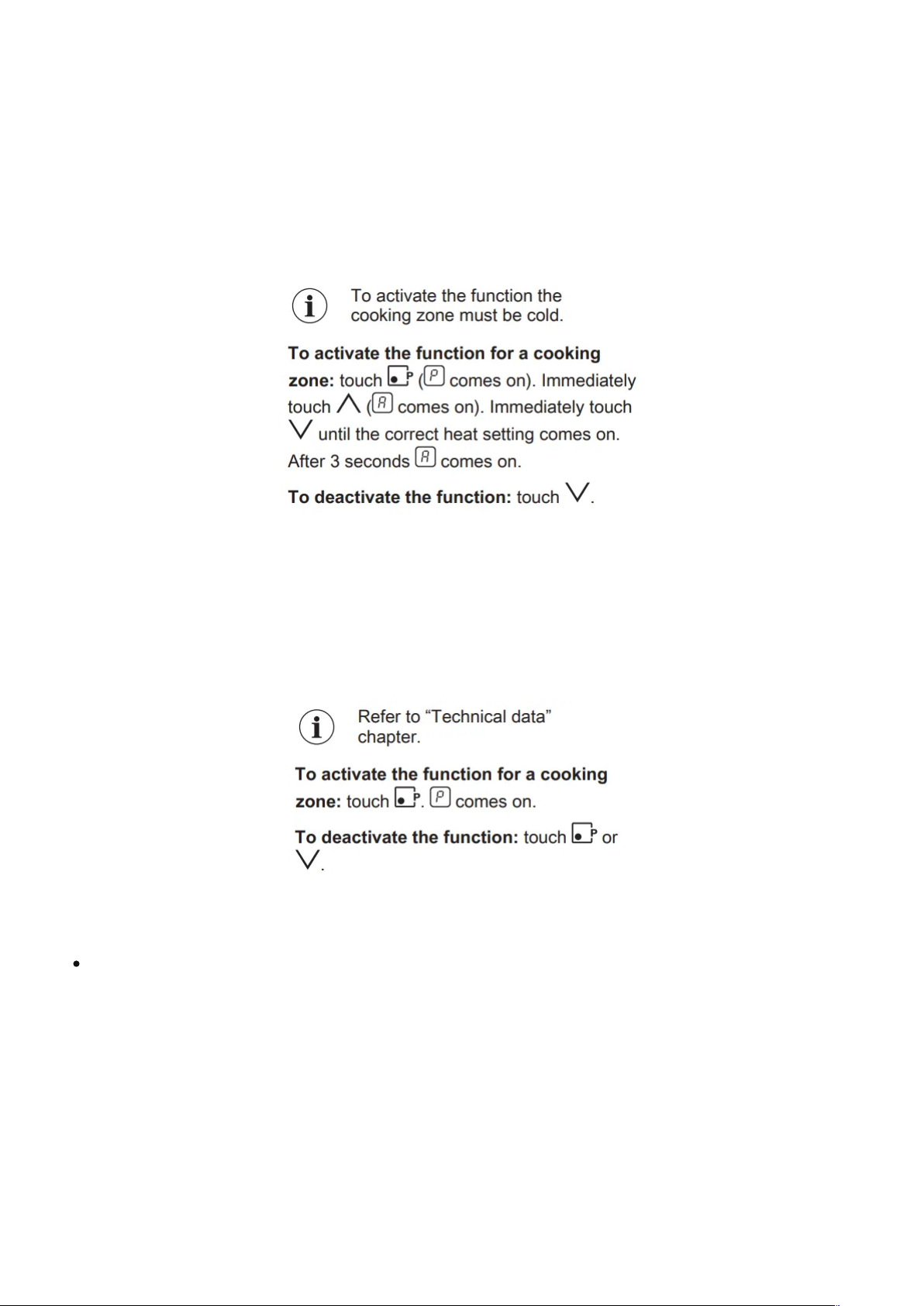 Para activar el funcionamiento automático de la función, desactive la placa y actívela de nuevo.