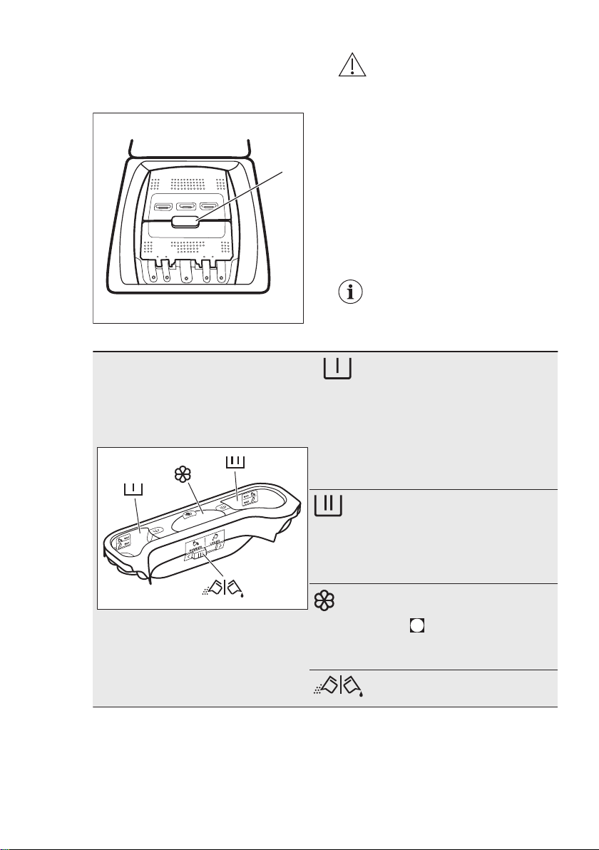 vý prací prostriedok - vpravo pre tekutý prací prostriedok).