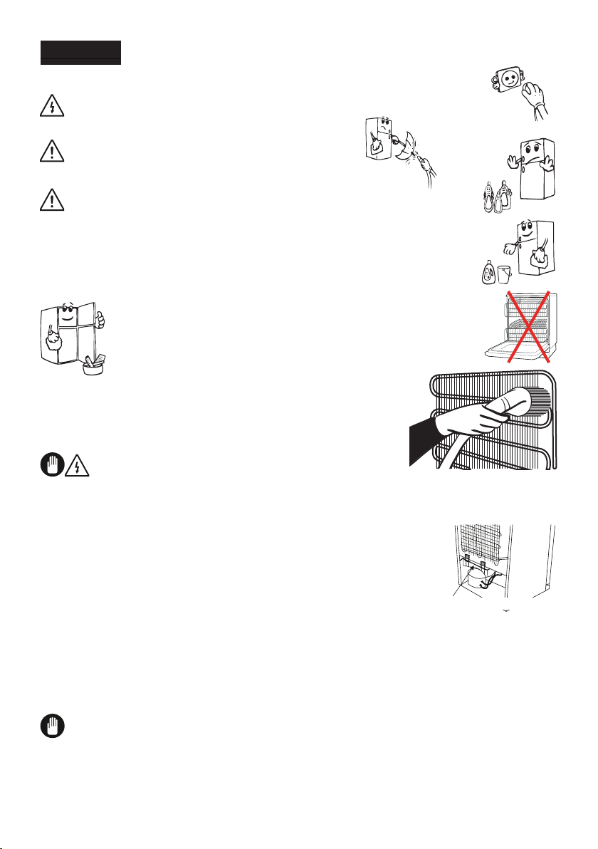 slukkes, afrimes, rengøres og tørres, og døren lades åben