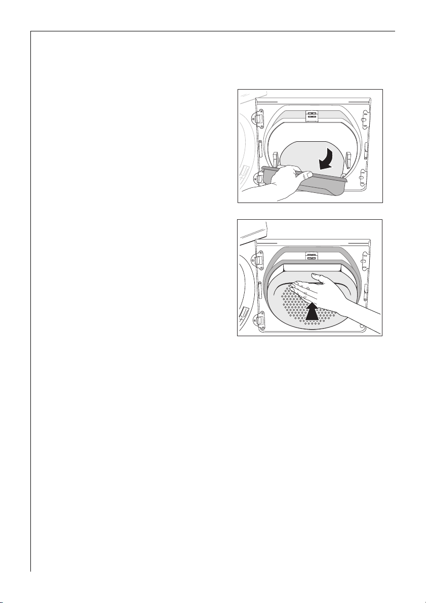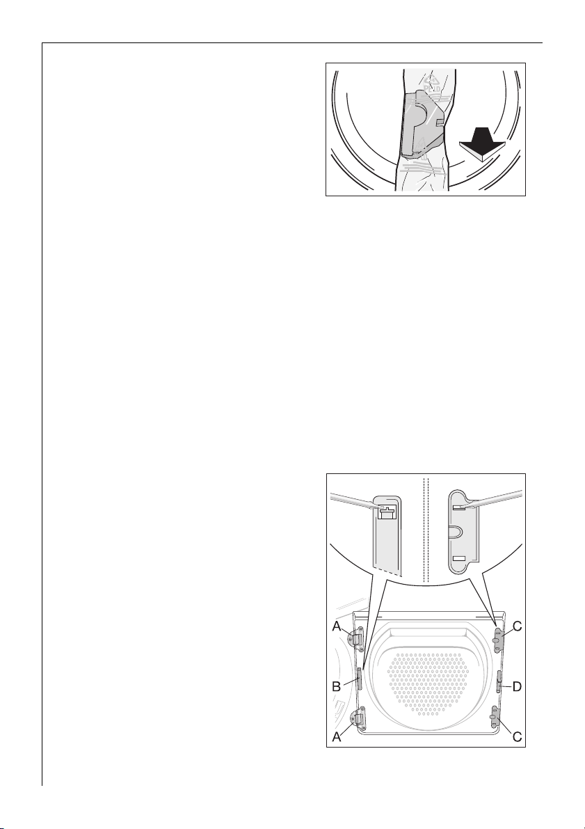 14.Sett ileggsdøren med hengslene inn i sporene på tørketrommelens
