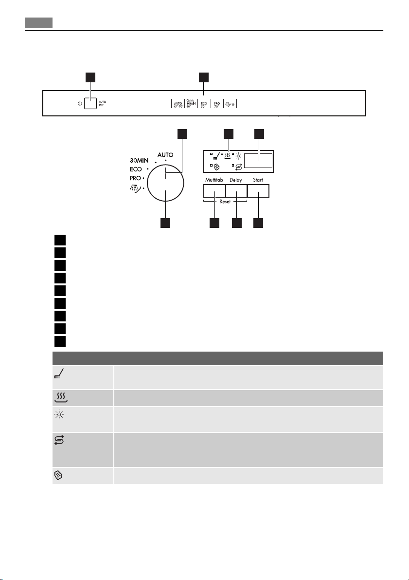 – Il display visualizza l'impostazione del contenitore del brillantante.