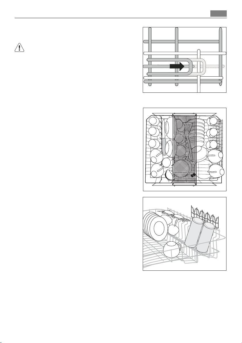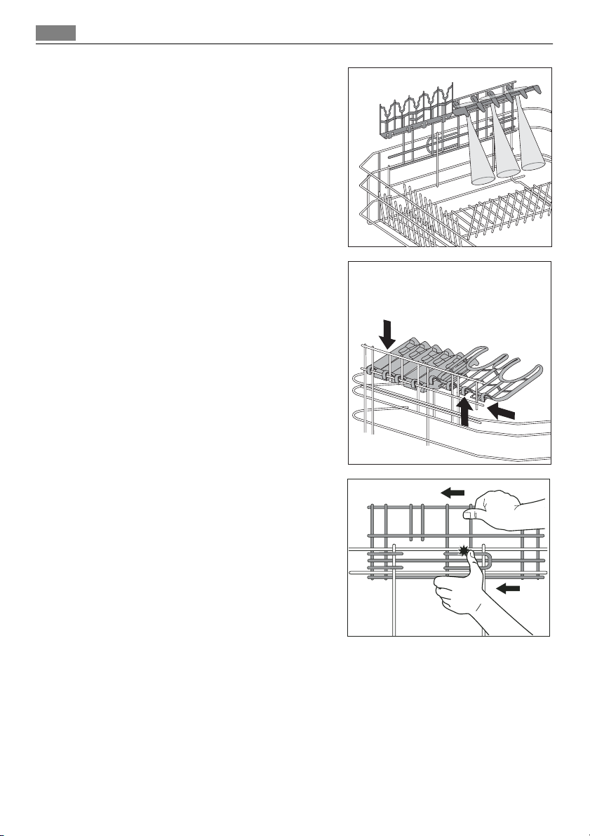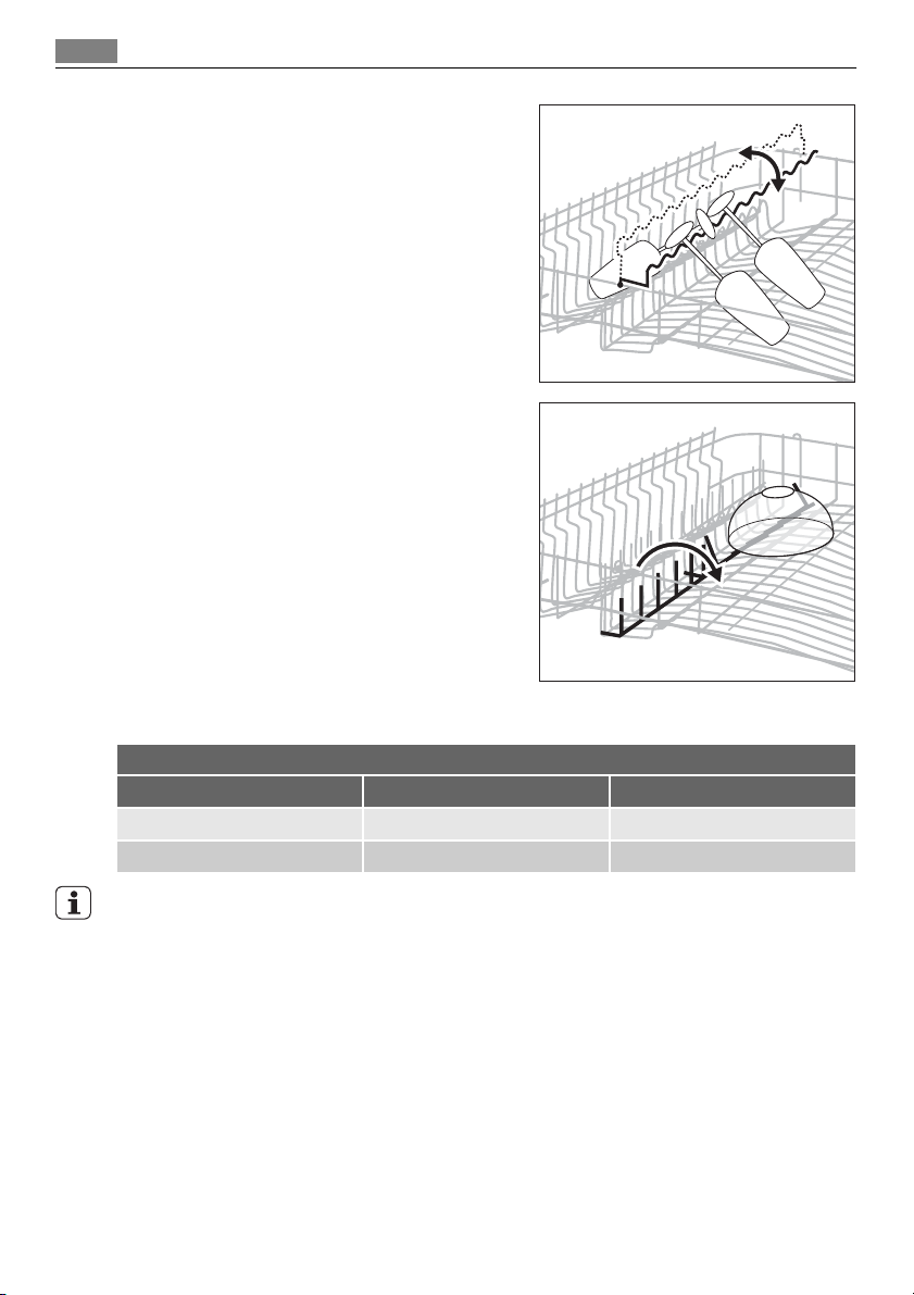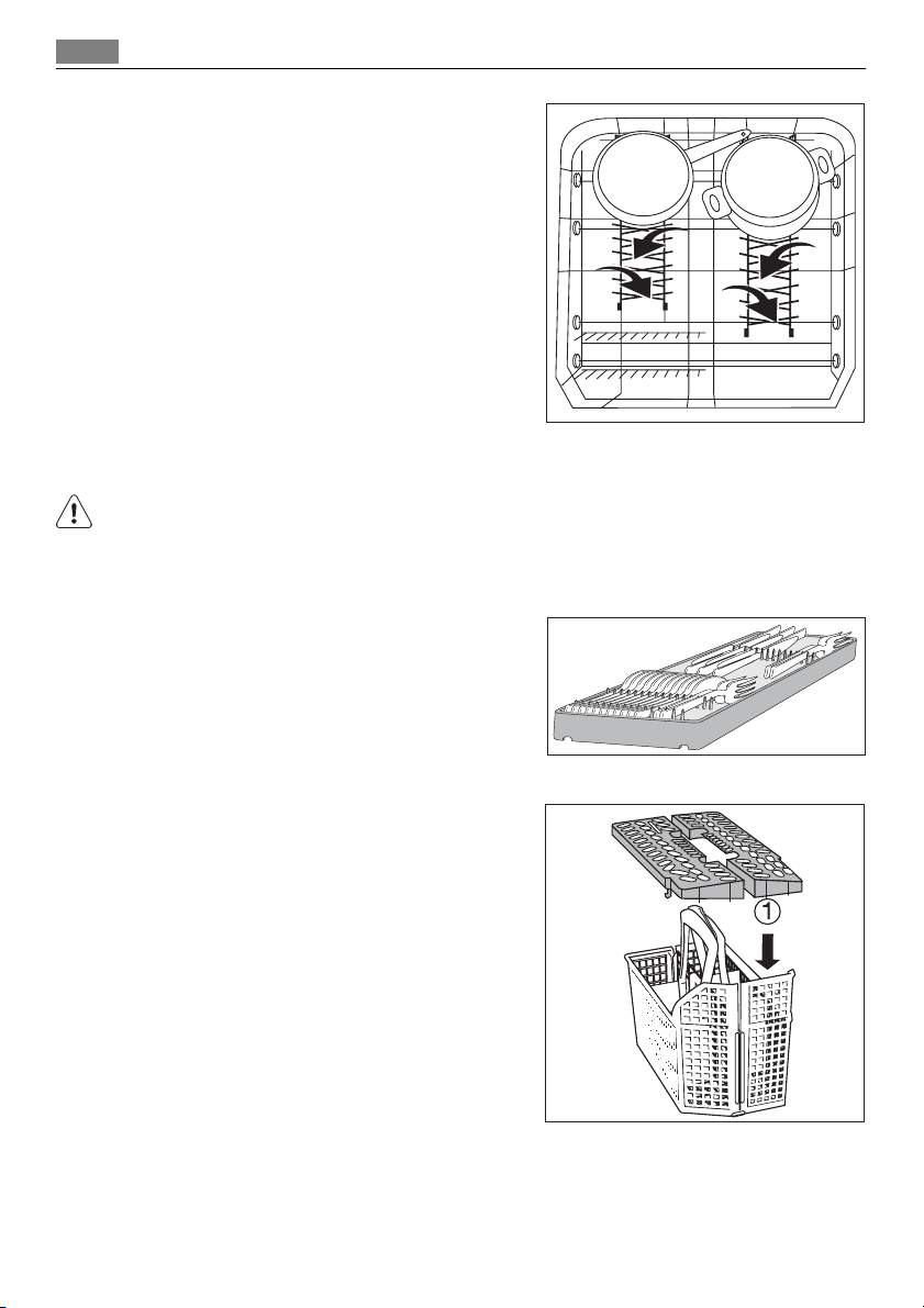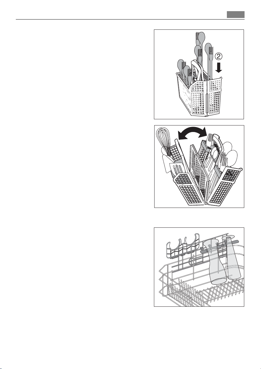 • Knive og andre genstande med skarpe spidser skal stilles i bestikkurven med spidserne