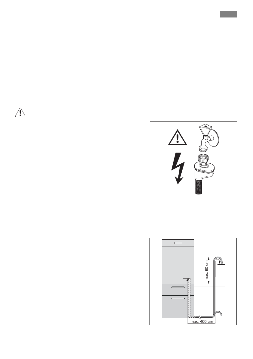 • A water inlet hose with safety valve must only be replaced by a specialist or by the Service