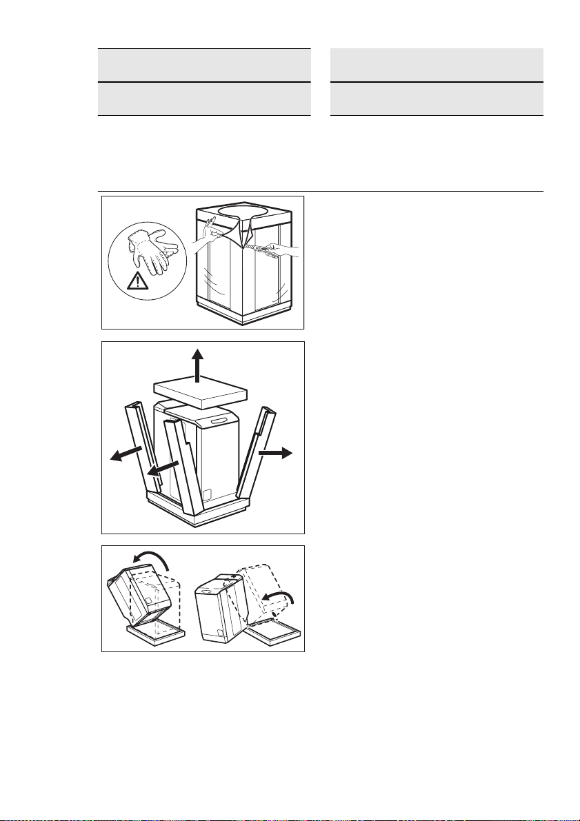 des Geräts alle Verpackungsmaterialien und Transportschrauben.