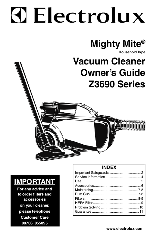 Should you require service on your Electrolux cleaner, please telephone 08706 055055.