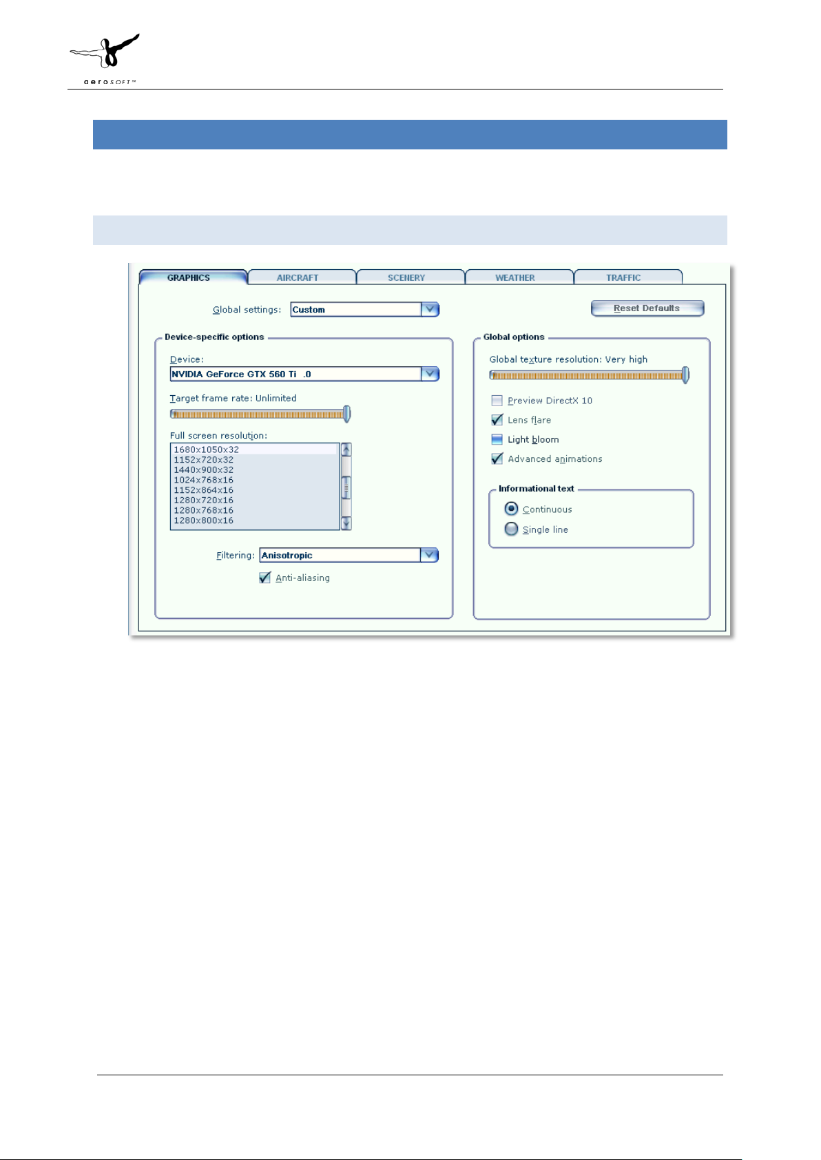 AIRCRAFT AND WEATHER SETTINGS
