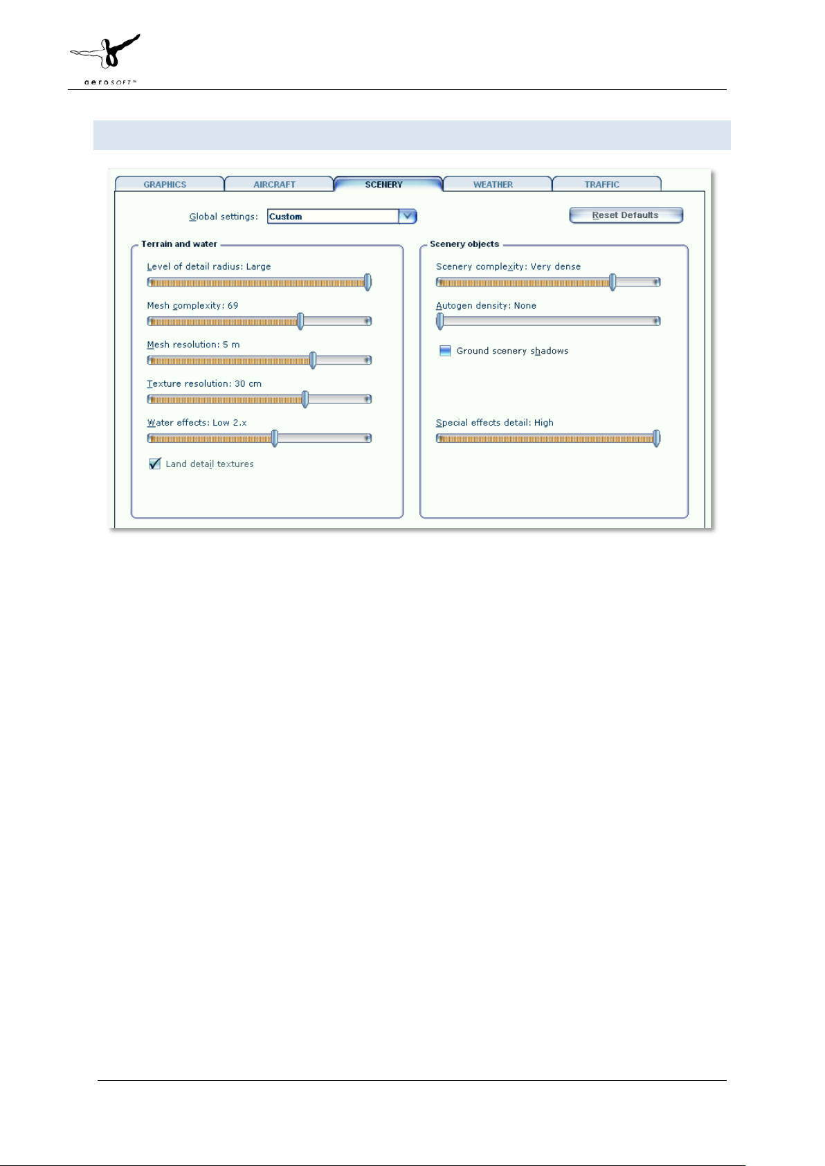 • Also, do make sure that ground scenery shadows box is left unticked, since all 3D objects have built-